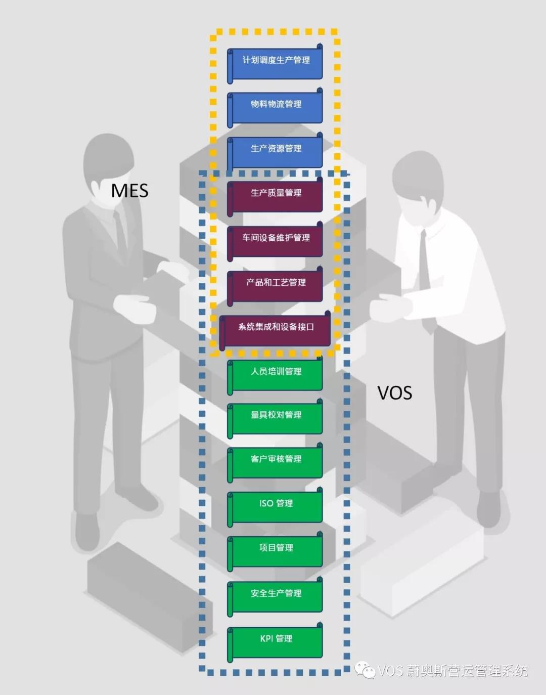VOS又称目视营运系统,,没有与ERP重叠的功能,相反VOS的定位是MIS概念的具体执行的系统,支持ERP欠缺的营运管理为中心的功能。同时VOS支持IoT的功能和低成本且功能齐全的跟单发单的集成方案。所以对于已经在使用ERP的企业(早年买入的ERP一般也不支撑近年流行的智能生产),引入VOS完全没有功能上的冲突,相反弥补设备接口的问题及强化营运管理的功能。而对于仍未导入ERP的中小企业来说,可说是一个既可以节省员工培训复杂的ERP的成本及人力资源,又能兼顾中小型厂商的需求的方案。